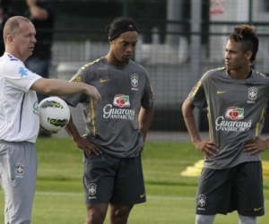 Diferente do dia anterior, Neymar assumiu o lado direito do ataque e Ronaldinho jogou pela esquerda durante todo o treino. Na tarde deste domingo, a Seleção faz o reconhecimento do gramado da partida contra Gana. O último treinamento da equipe brasileira será no Craven Cottage Stadium e está previsto para começar às 13h (Brasília).