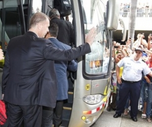 Assim que a seleção saiu do aeroporto, a euforia tomou conta dos torcedores que estavam em frente ao Hotel Marriott, onde a delegação brasileira ficará concentrada até a partida. A cada jogador que desembarcava do ônibus, a alegria tomava conta dos que estavam presentes. O segundo grupo de atletas, formado por Daniel Alves, Thiago Silva, Jonas, Marcelo, Adriano, Luiz Gustavo, Hernanes, Hulk e os goleiros Julio Cesar e Neto, chegou no começo da noite chegou no começo da noite e o restante ao longo da terça-feira.