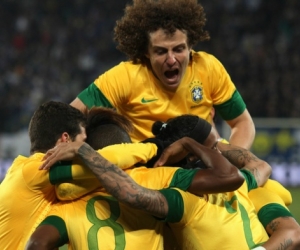 Nem bem os jogadores aqueceram dentro do gramado e Marcelo já abriu o placar para a Seleção Brasileira aos três minutos e trinta segundos. Depois de uma jogada que começou confusa com a participação de Neymar e Hernanes, Daniel Alves percebeu a movimentação do lateral esquerdo, que recebe bom passe e bateu sem chance para o goleiro adversário.